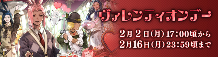 今年も「愛」を伝える祝祭「ヴァレンティオンデー」の季節が近づいてきました。各都市や冒険者居住区では、祝祭を彩る飾りつけがおこなわれます。詳しくは『こちら』をご覧ください。